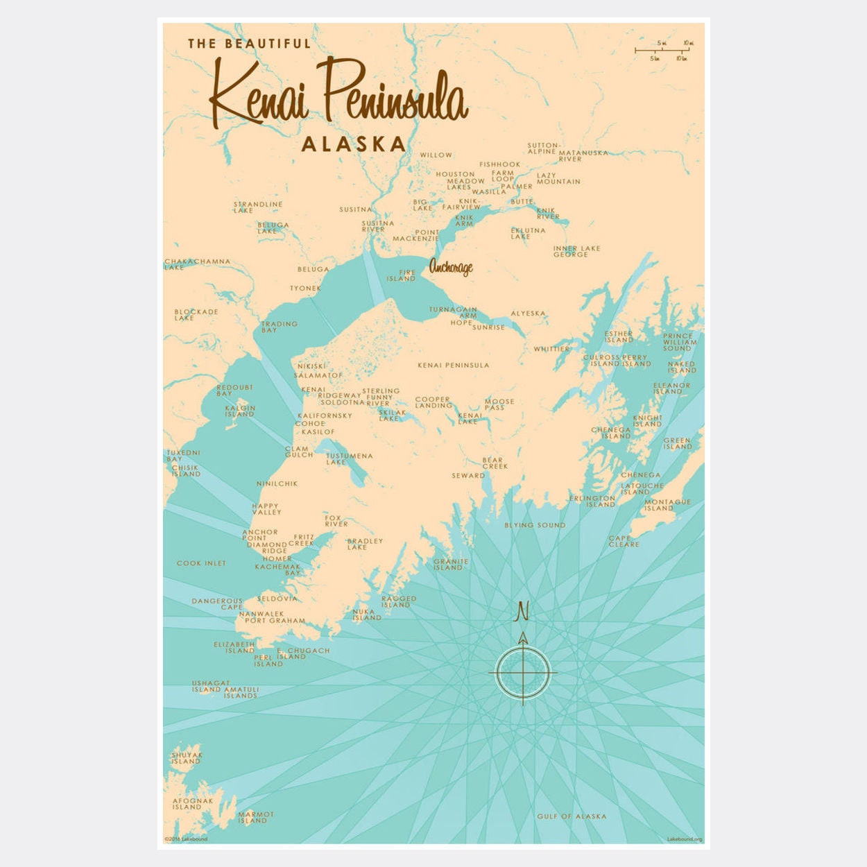 Kenai Peninsula Alaska Lake House Décor Cabin Art Custom Map Gifts