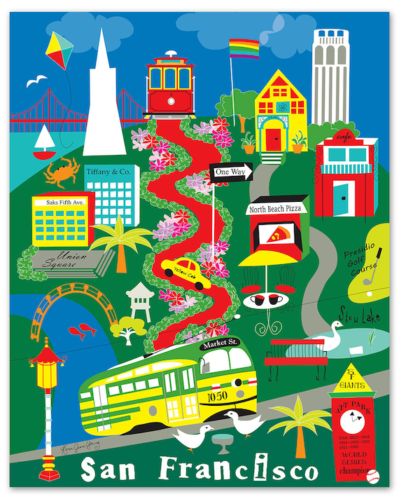 San Francisco Illustrated Map Poster by Maria Rabinky Fine Art