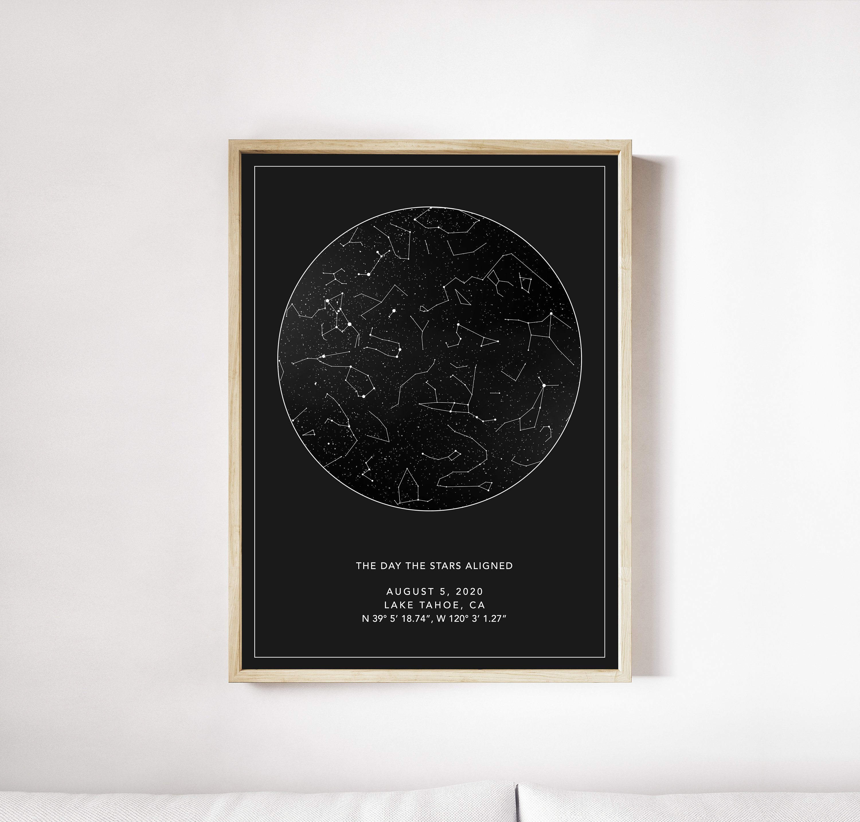 PERSONAL Star Map by DATE and Location Constellation Art Wall