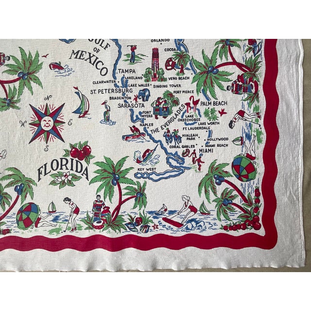1950s Vintage Printed Map of Florida Tablecloth | Chairish